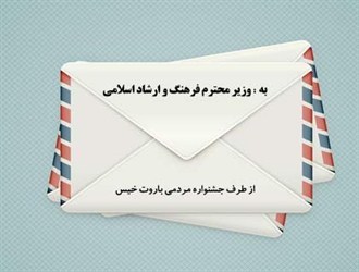 به گزارش فرهنگ عجب شیر به نقل از شبکه اطلاع رسانی راه دانا به نقل از سایت رسمی جشنواره مردمی باروت خیس(barotekhis.ir)، در متن این نامه آمده است: بسمه تعالی وزیر محترم فرهنگ و ارشاد اسلامی جناب آقای دکتر علی جنتی چنانکه مستحضرید جایزه بین المللی باروت خیس (wet gunpowder) در دو سال گذشته توسط نهادی مردمی برگزار شد که …
