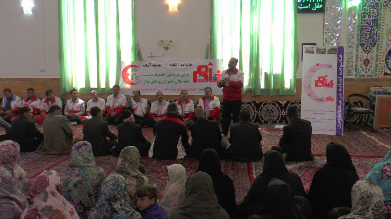 اجرای طرح خادم (خانواده آماده در مخاطرات) با آموزش حضوری کمک های اولیه و امداد در روستای چنار شهرستان عجب شیر برگزار شد.