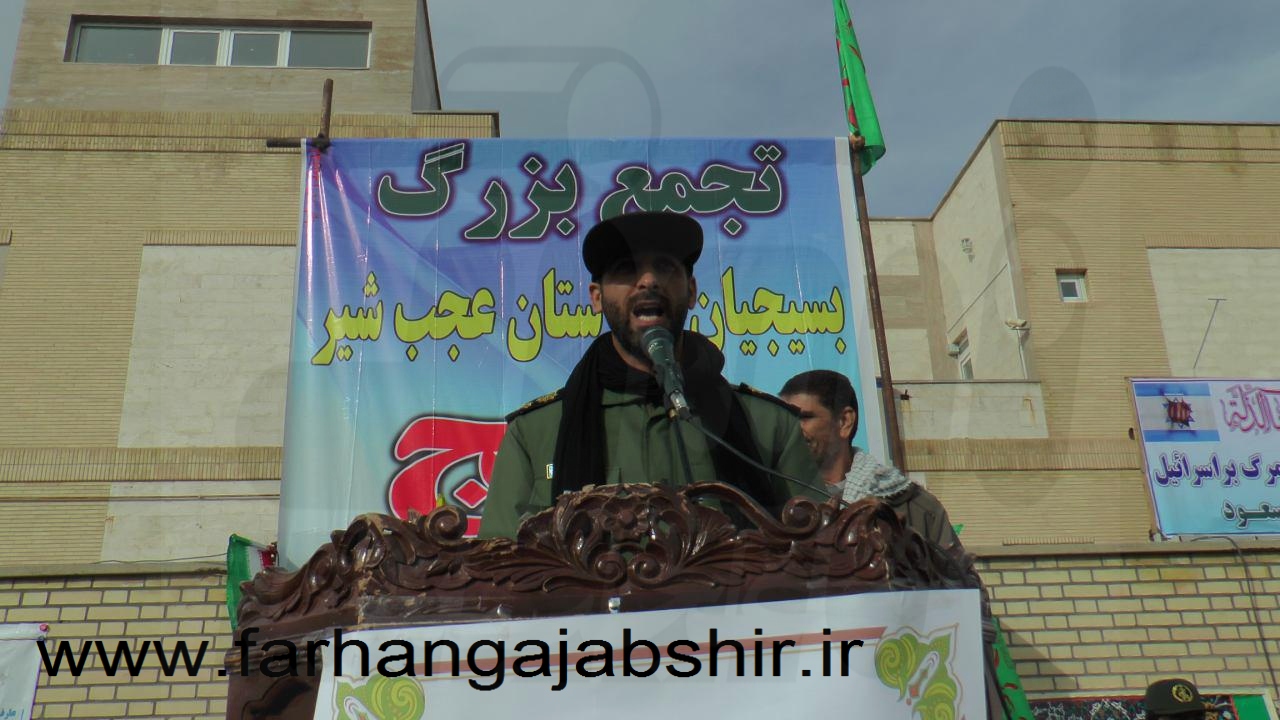 به گزارش فرهنگ عجب شیر ، همایش بزرگ بسیجیان شهرستان عجب شیر همزمان با سراسر کشور در پارکینگ شهرداری برگزار شد . جهت مشاهده تصاویر در سایز اصلی روی تصاویر کلیک کنید