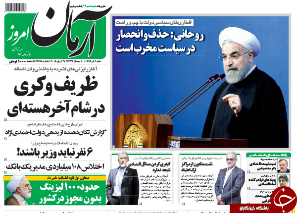 به گزارش فرهنگ عجب شیر به نقل از خبرنگاران،تصاویر صفحه نخست روزنامههای سیاسی کشور که صبح امروز در پیشخوان مطبوعات عرضه میشود. انتهای پیام/