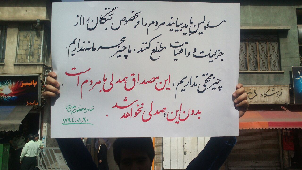 در همین راستا تعدادی از دانشجویان که پلاکاردهایی با مضمون انتشار فکت شیت ایرانی در دست داشتند، در حد فاصل چهارراه شاهزاده قاسم تا حرم شاهچراغ به استقبال روحانی رفتند.