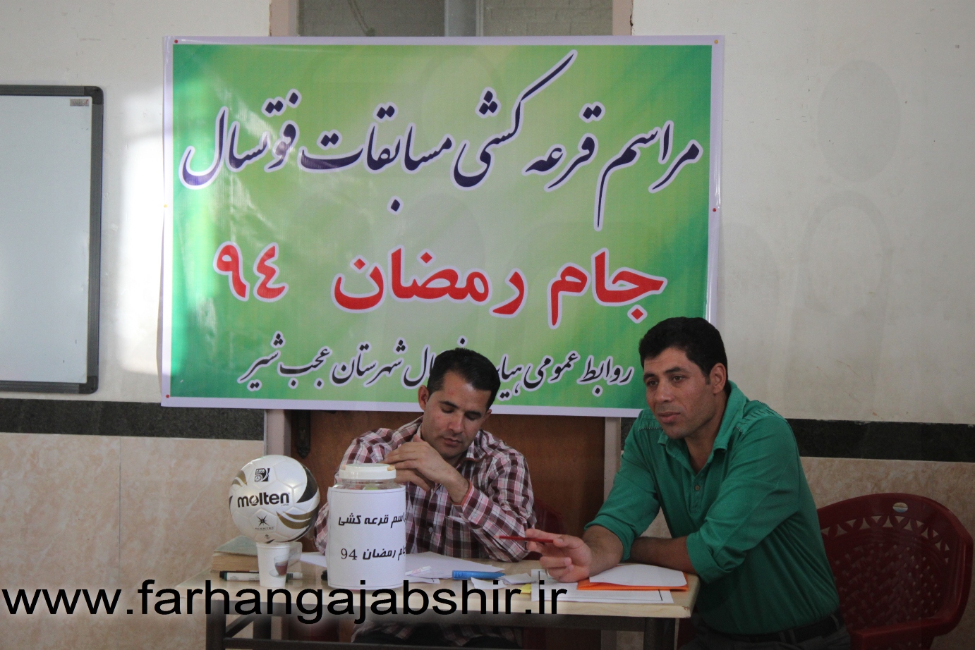 به گزارش فرهنگ عجب شیر ، مراسم قرعه کشی مسابقات فوتسال جام رمضان ۹۴ شهرستان عجب شیر با حضور سرپرستان تیمهای حاضر در مسابقات در اداره ورزش و جوانان این شهرستان برگزار شد .