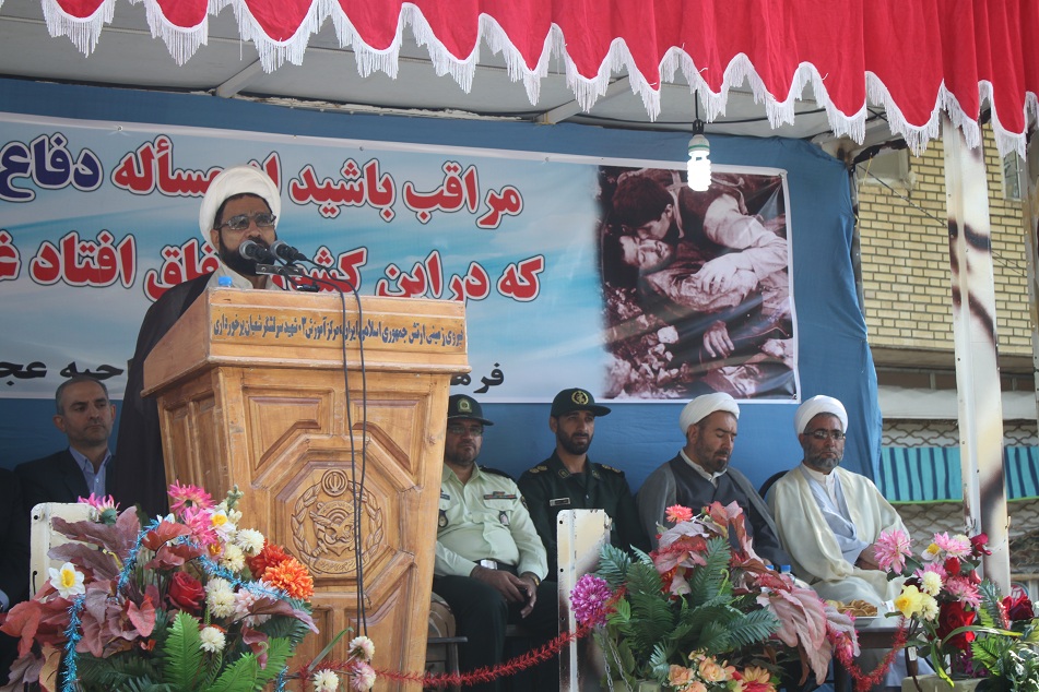 در این مراسم حجت الاسلام محمود شربیانی هفته دفاع مقدس را نماد افتخارات ملت شریف ایران دانست که در ۸ سال جنگ تحمیلی و در دفاع از مرزهای میهن اسلامی برای عزت و سربلندی اسلام و قرآن حماسههای بیبدیلی آفریدند.