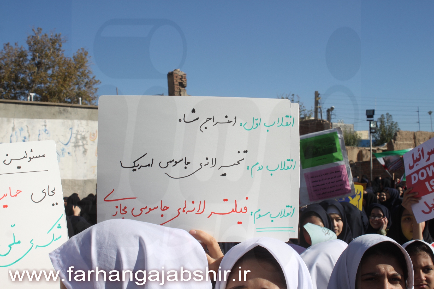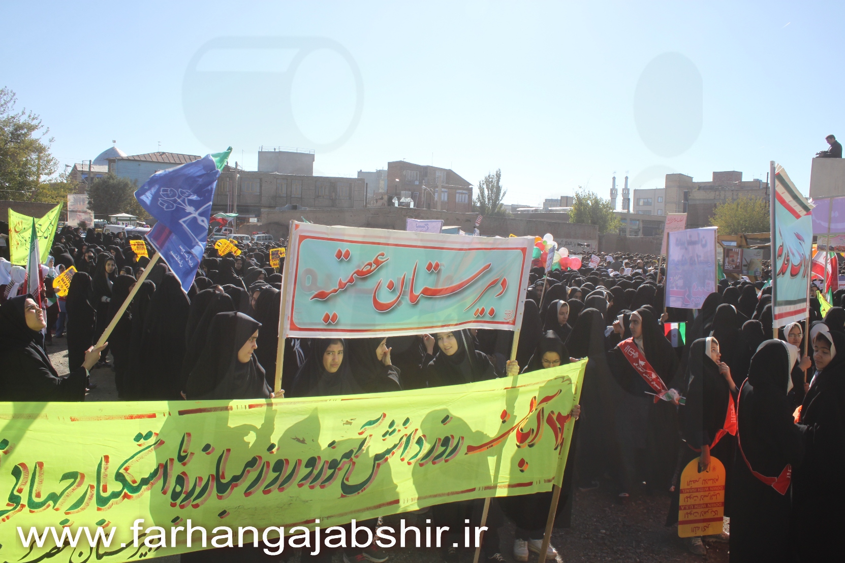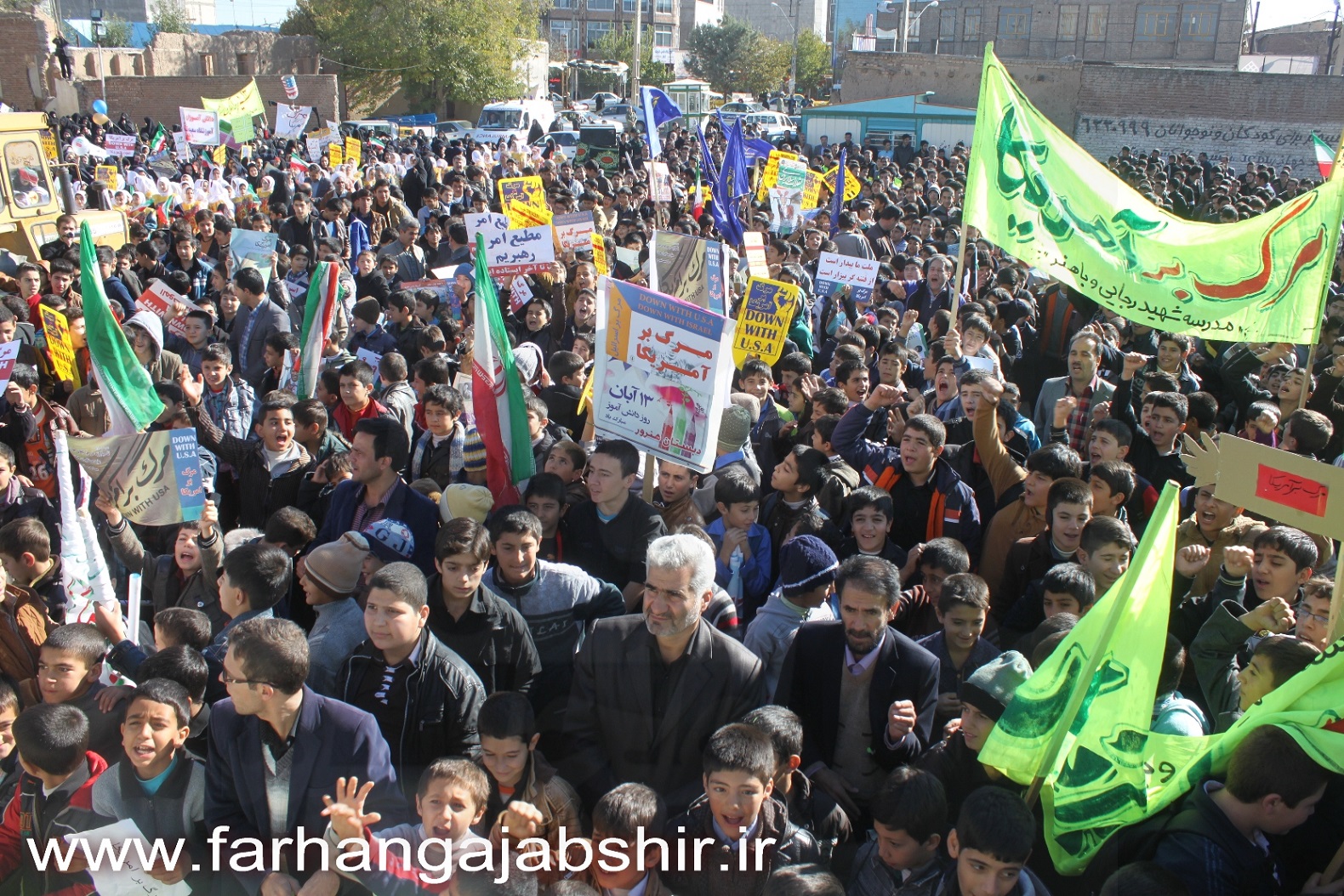 به گزارش فرهنگ عجب شیر ،دانش آموزان و دیگر اقشار شهرستان عجب شیر به مناسبت گرامیداشت سالروز ۱۳ آبان با تجمع گسترده خود شعار مرگ برآمریکا ، مرگ بر اسرائیل و مرگ بر آل سعود را سر دادند.