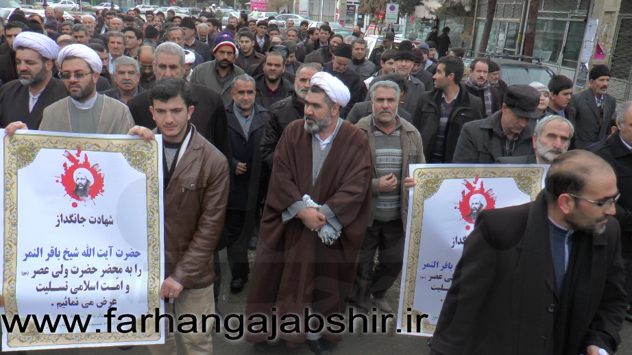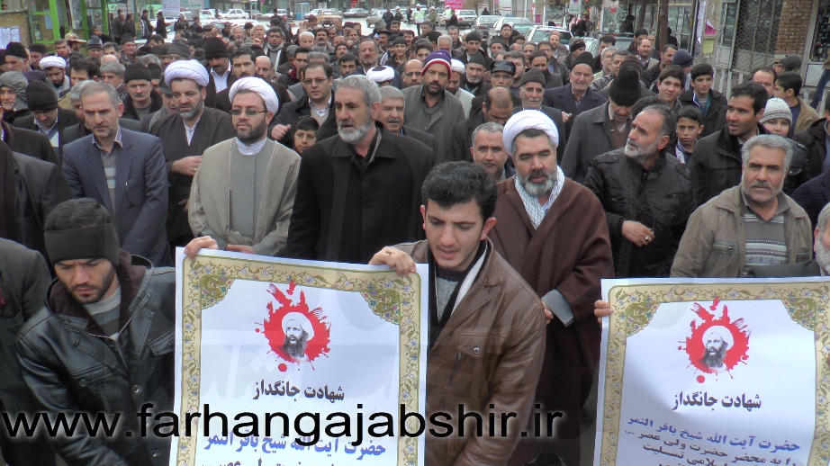 به گزارش فرهنگ عجب شیر ،بهدنبال جنایت بزرگ رژیم منحوس آلسعود در به شهادت رساندن عالم مؤمن و مظلوم، آیتالله نمرباقرالنمر تجمع و راهپیمایی اعتراضی همزمان با سراسر کشور در شهرستان عجب شیر برگزار شد.