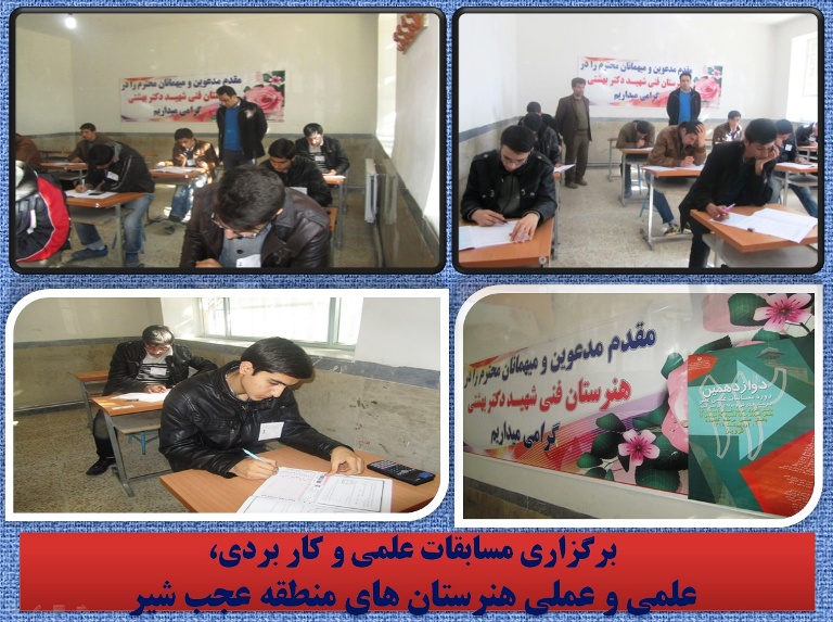 به گزارش فرهنگ عجب شیر به نقل از روابط عمومی آموزش و پرورش عجب شیر ،همزمان با سایر مناطق استان مرحله اول مسابقات علمی هنرستان های فنی و حرفه ای و کاربردی هنرستان های کاردانش در منطقه عجب شیر روز دوشنبه ۴اسفندماه راس ساعت ۱۰ صبح برگزار گردید.