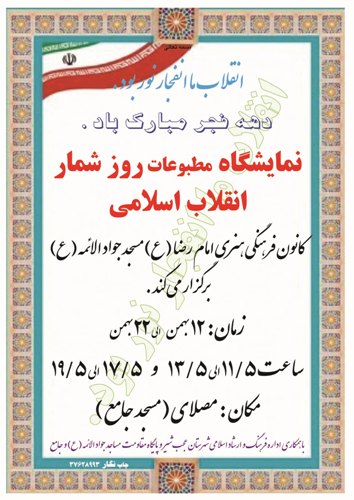 به گزارش فرهنگ عجب شیر ، فرهاد جبار ژور در گفتگو با خبر نگار فرهنگ عجب شیر افزود : همزمان با ایام الله دهه مبارک فجر نمایشگاه روز شمار انقلاب اسلامی درشهرستان عجب شیر برگزار می گردد در این نمایشگاه از روزنامه های دوران انقلاب برای نمایش وقایع رویدادهای سال ۵۷ استفاده شده است. گفتنی است این نمایشگاه توسط کانون …