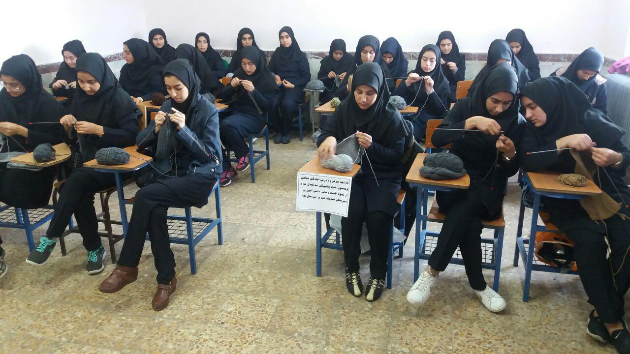دانش آموزان دبیرستان صدیقه کبری عجب شیر در حرکتی خود جوش و زیبا ،بخشی از کلاس درس آمادگی دفاعی خود را به بافتن شال و کلاه جهت رزمندگان مدافع حرم اختصاص دادند